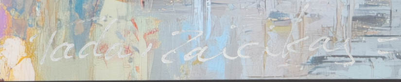 This original painting of acrylic, enamel and spray paint on canvas measures 19" x 26" in size and has been hand-signed and titled by the artist, Tadas Zaicikas (TedyZet).