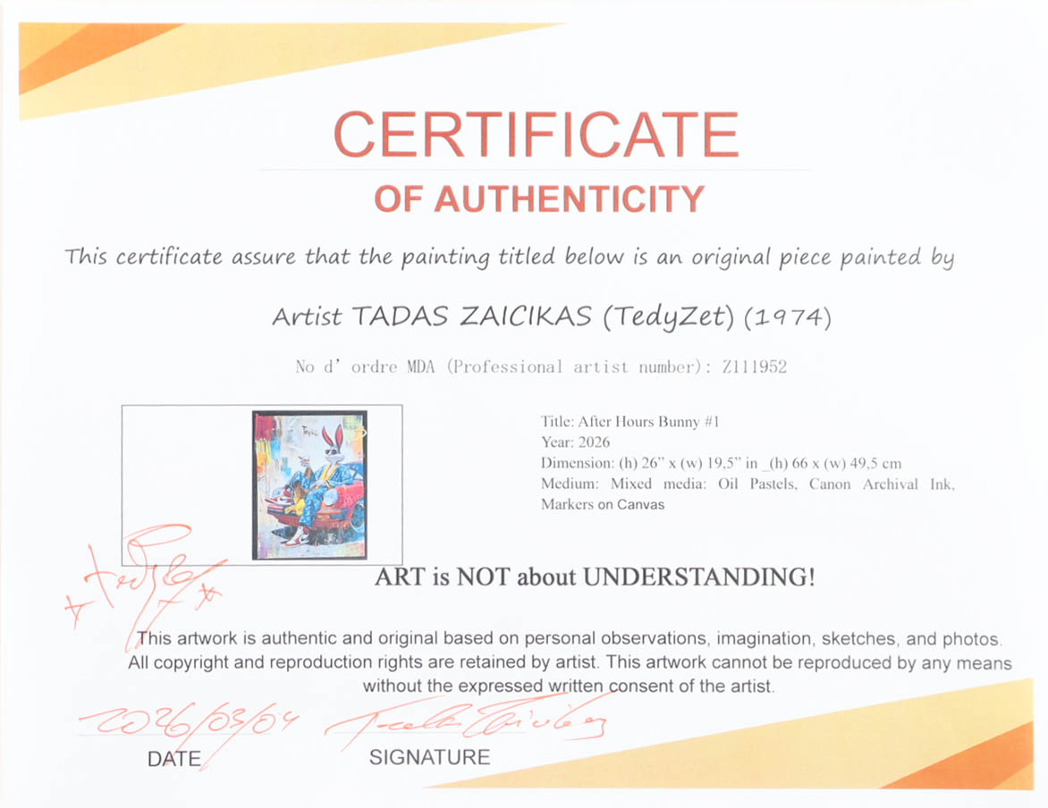 "After Hours Bunny #1" 2026 19x26 Original Painting on Canvas by Tadas Zaicikas | TedyZet (Zaicikas)