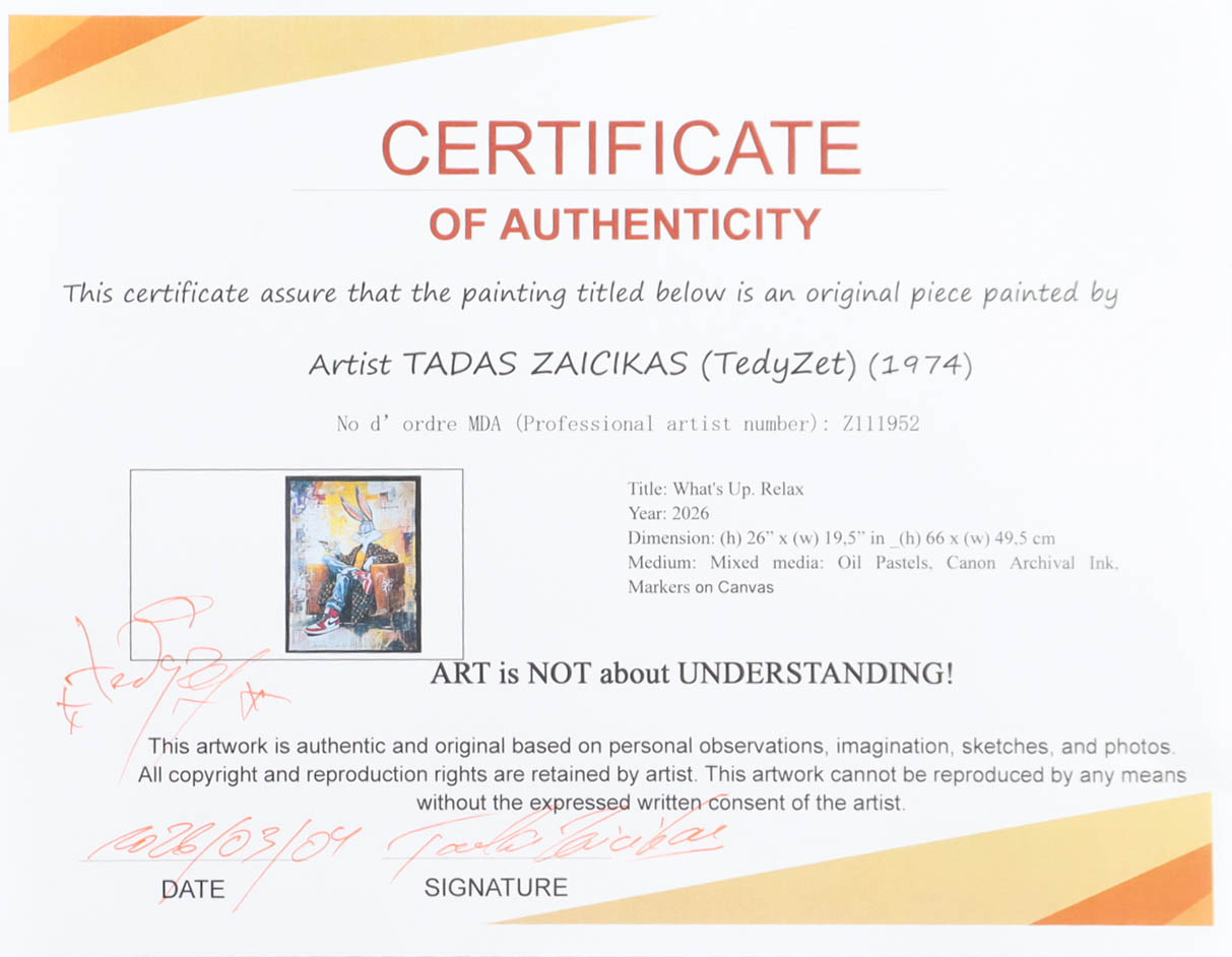 "What's Up Relax" 2026 19x26 Original Painting on Canvas by Tadas Zaicikas | TedyZet (Zaicikas)