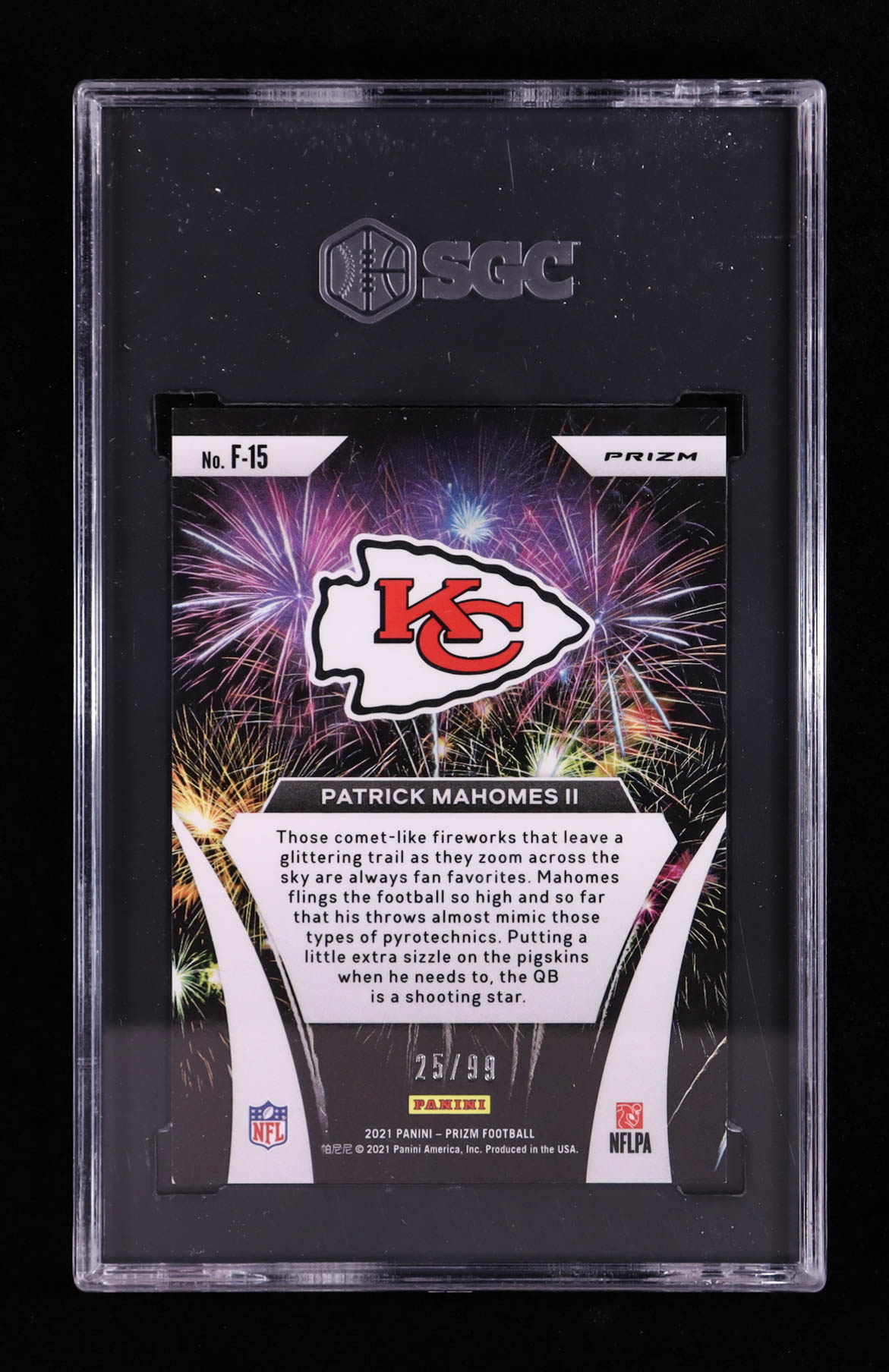 Patrick Mahomes II 2021 Panini Prizm Fireworks Prizms Blue Ice #15 #25/99 (SGC 9.5)