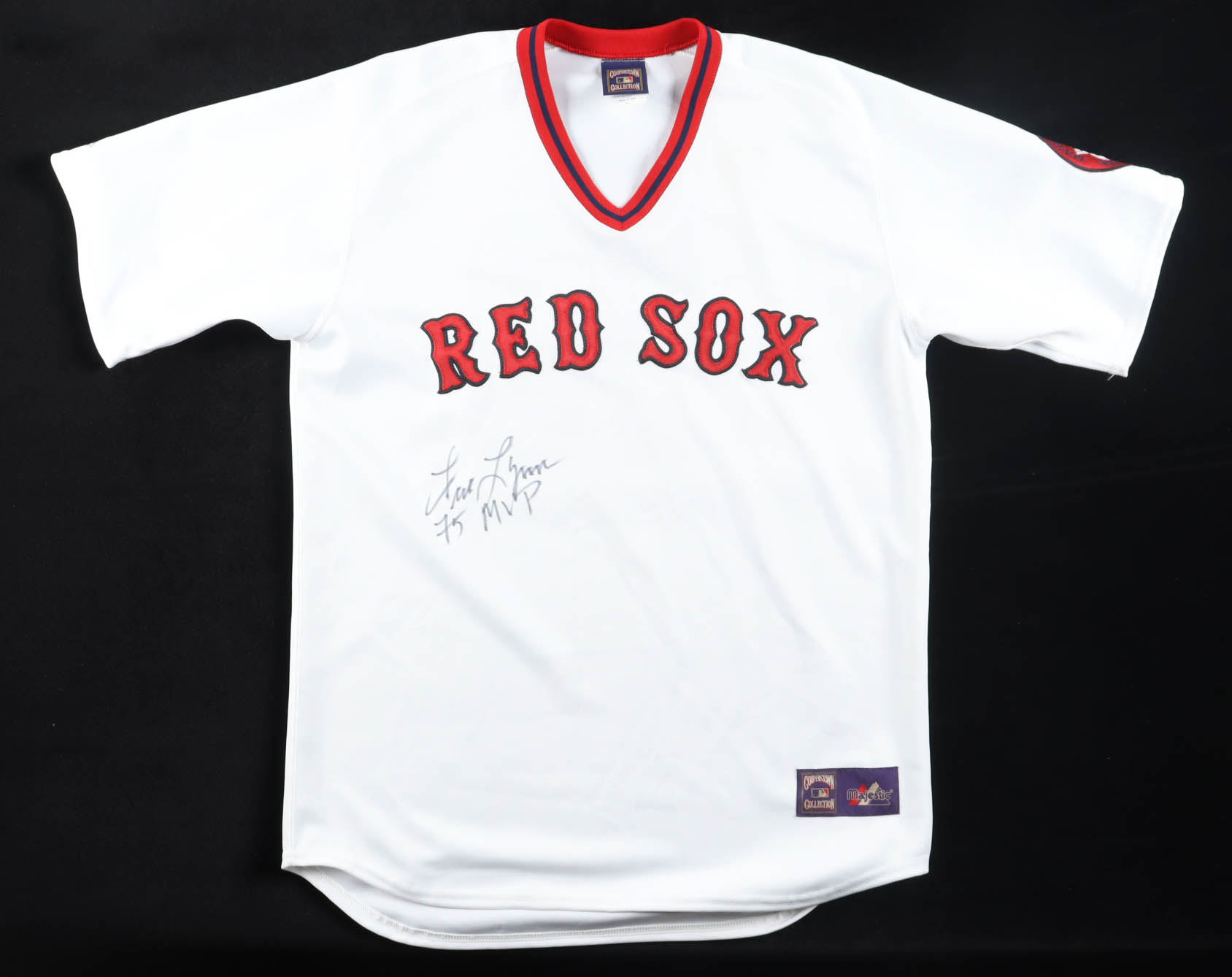 Majestic jersey. Everything is sewn on, size L. Hand-signed and inscribed by Fred Lynn (Boston Red Sox). Please note, the hologram is on the reverse number.