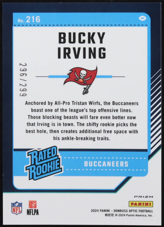 Bucky Irving 2024 Donruss Optic Aqua #216 RR RC #296/299
