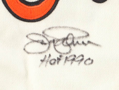 Mitchell & Ness jersey. Everything is sewn on, size L. Hand-signed and inscribed by Jim Palmer (Baltimore Orioles, HOF).