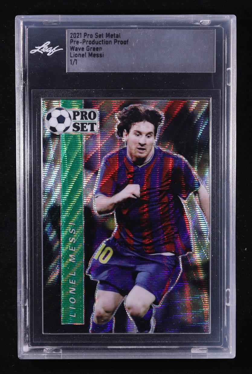Lionel Messi 2021 Pro Set Metal Pre-Production Proof Wave Green #NNO 1/1 (Leaf)