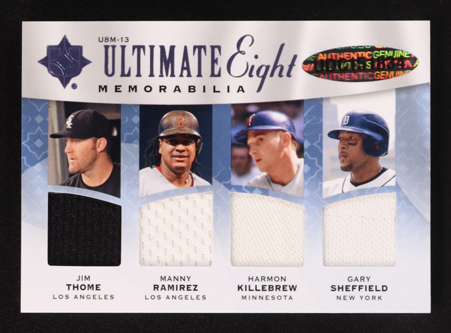 Harmon Killebrew / Reggie Jackson / Gary Sheffield / Ken Griffey Jr. / Mike Schmidt / Manny Ramirez / Jim Thome / Ted Williams 2009 Ultimate Collection Ultimate Eight Memorabilia Gold #U8M13 #3/10