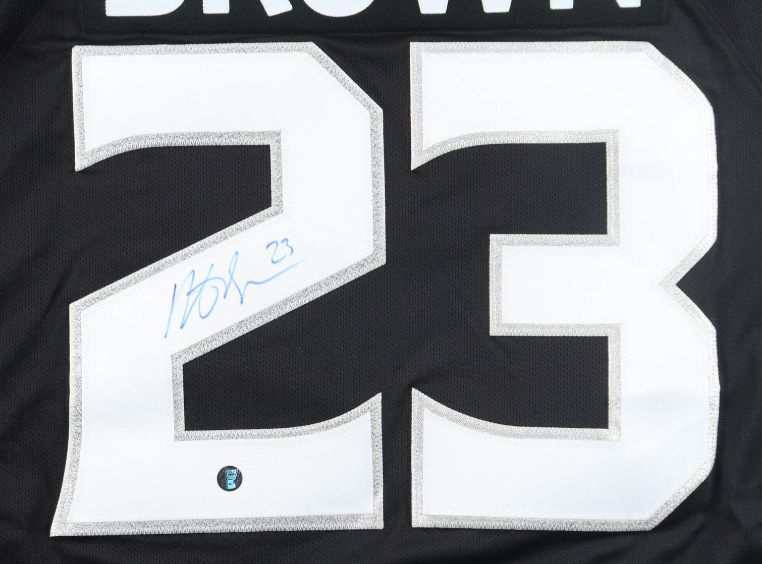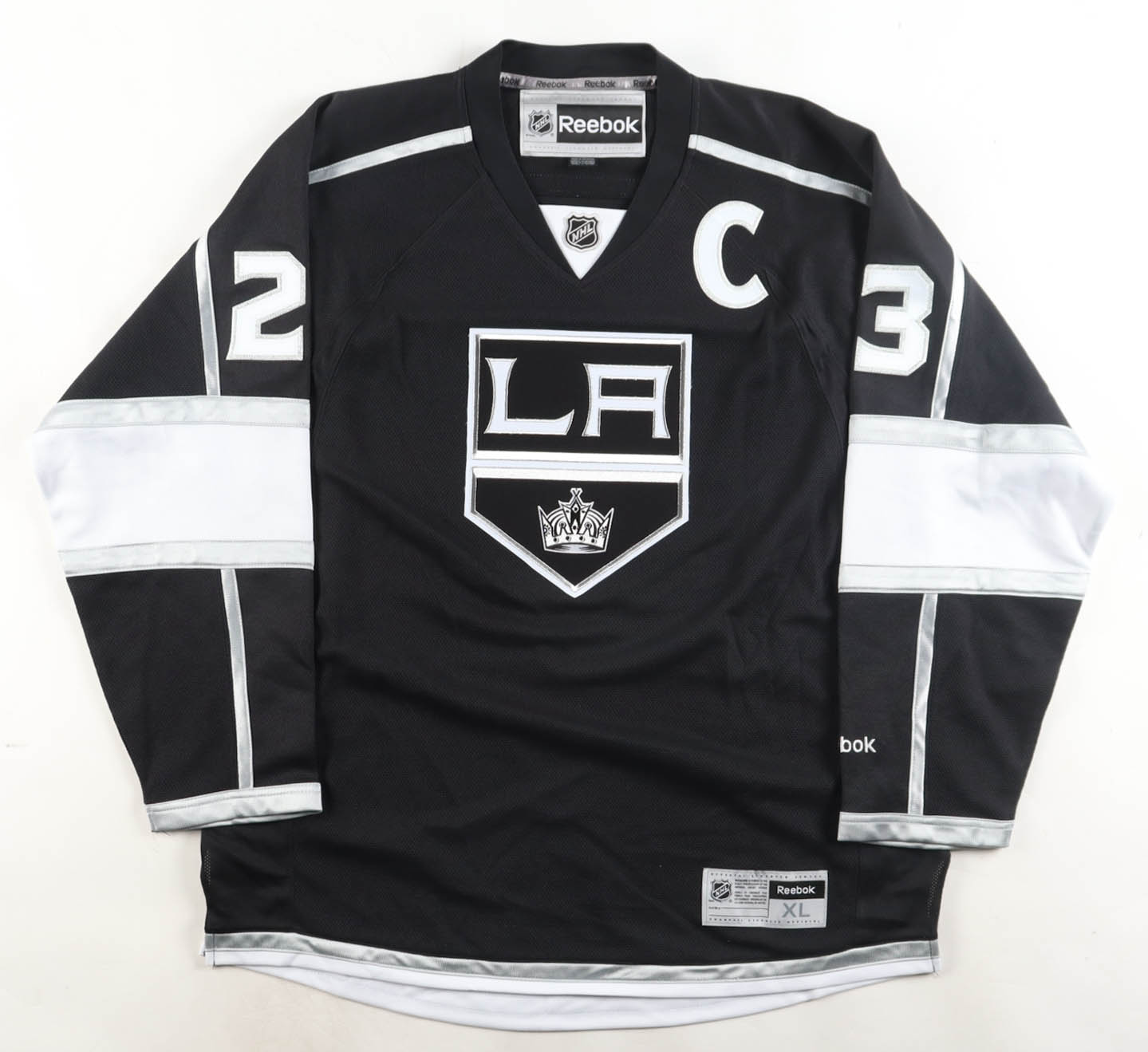 Reebok jersey with everything sewn on, size XL. Hand-signed by Dustin Brown (Los Angeles Kings).