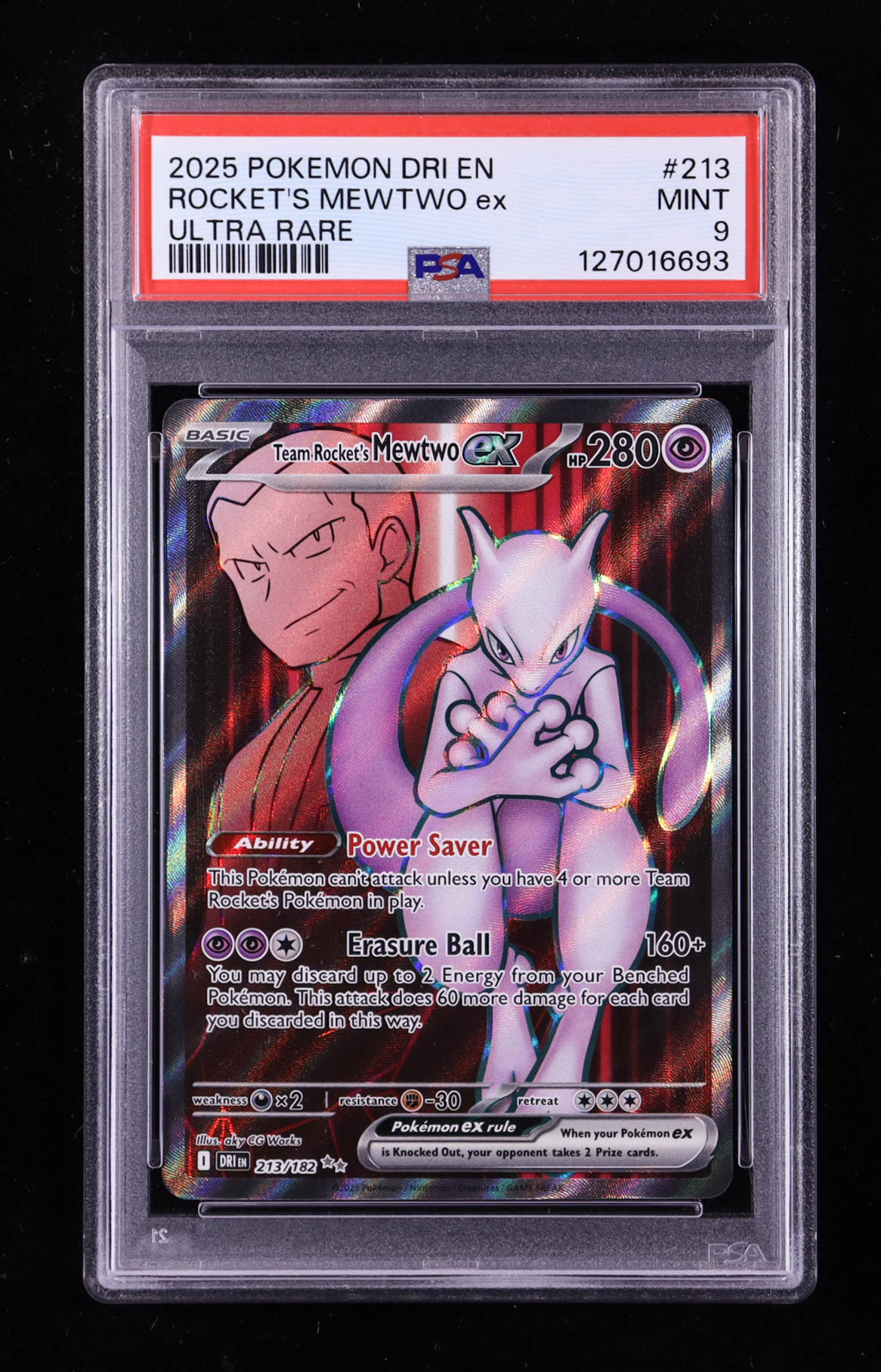 Team Rocket's Mewtwo ex 2025 Pokemon TCG Scarlet & Violet Destined Rivals #213 (PSA 9)
