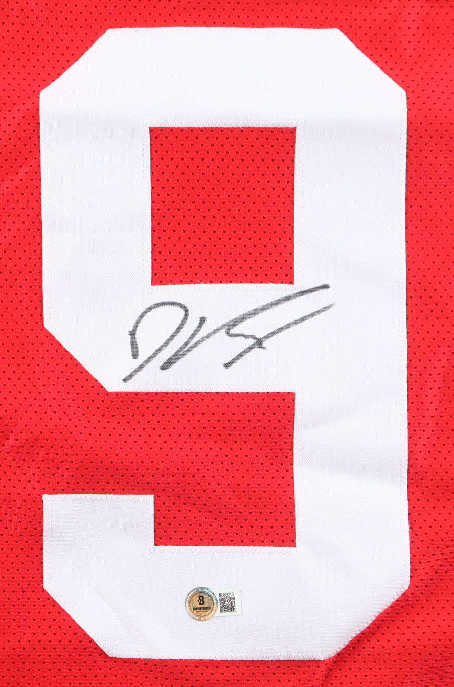 Custom jersey with everything sewn on, size XL. Hand-signed by Dawson Knox.