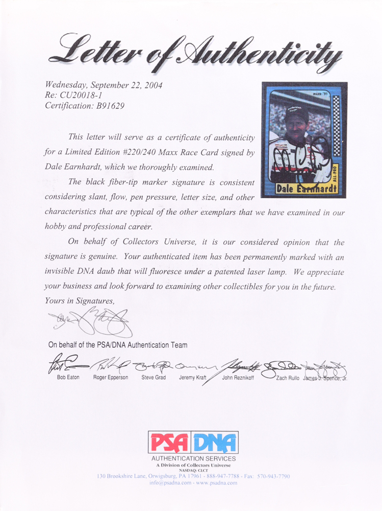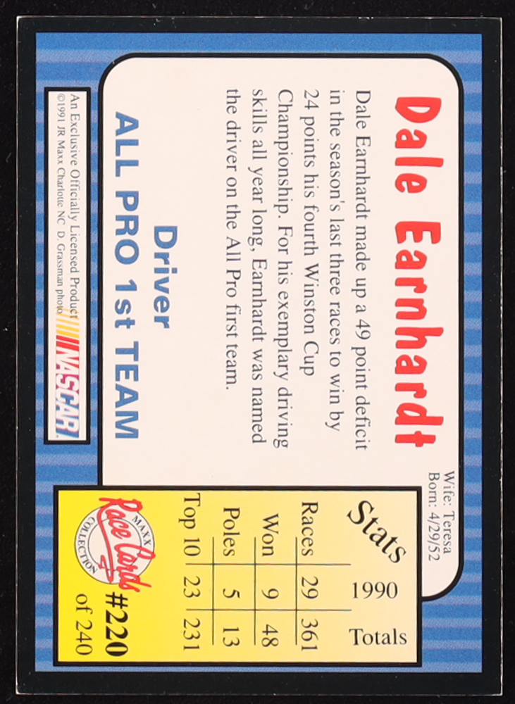 Dale Earnhardt Sr. Signed 1991 Maxx Collection #220 (PSA)