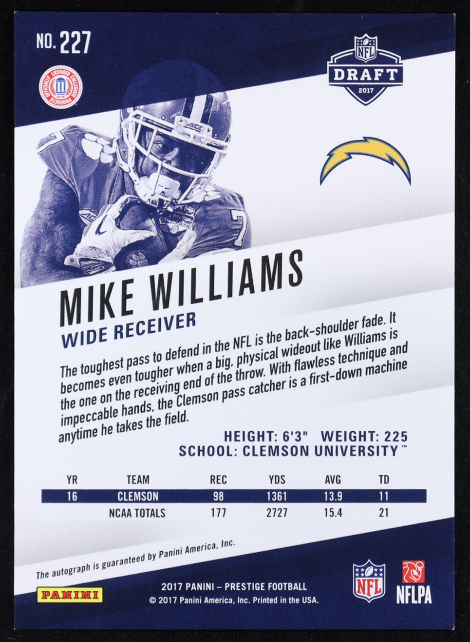 Mike Williams 2017 Prestige Rookie Autographs #227 RC