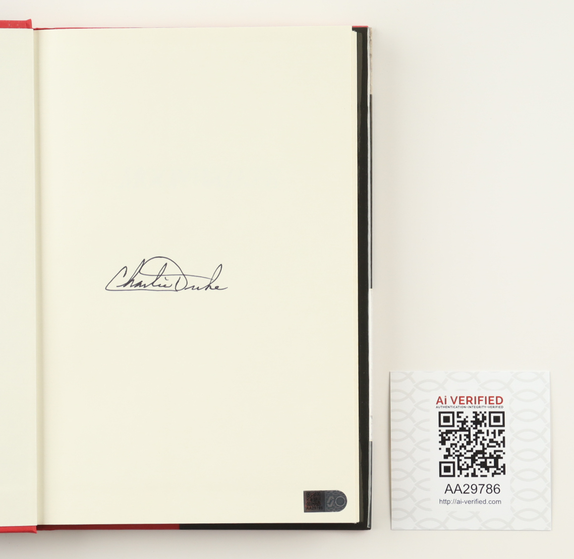 Hardcover book has been hand-signed on the inside cover page by author Charlie Duke.