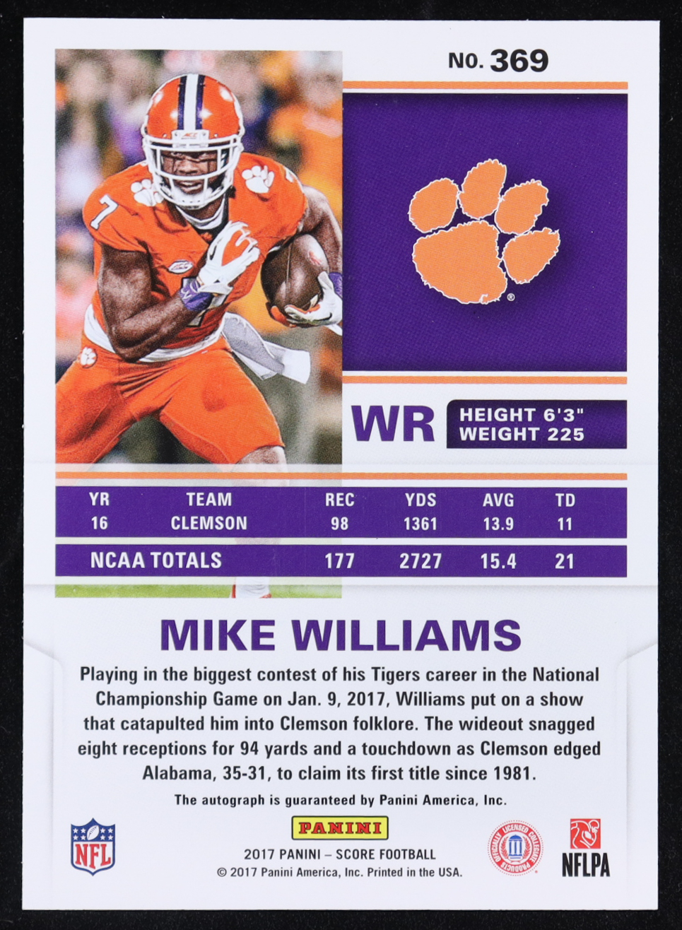 Mike Williams 2017 Score Rookie Autographs #369 RC