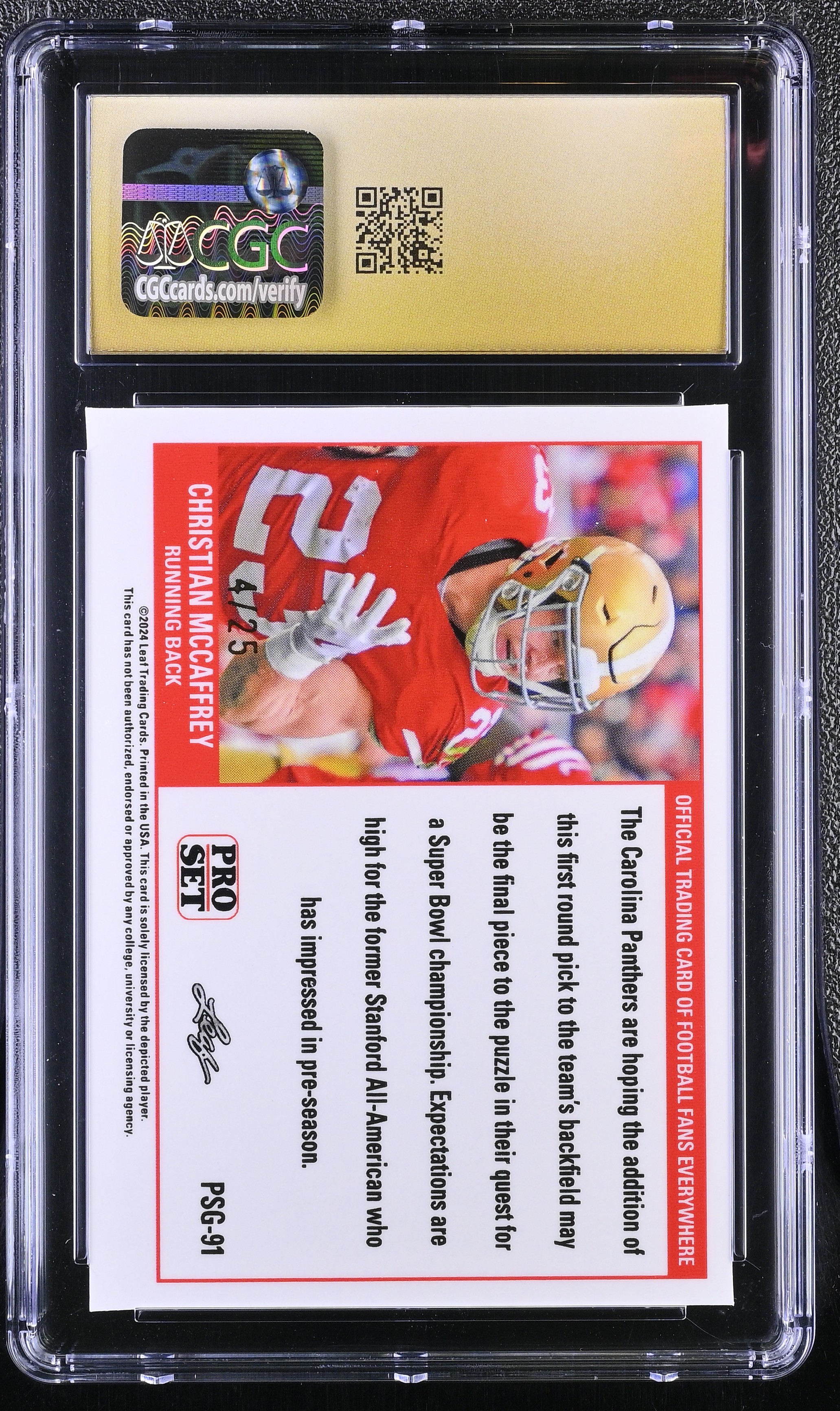 Christian McCaffrey 2023 Leaf Web Exclusives Pro Set Blue #PSG91 #4/25 (CGC 10 | Pristine Black Label)