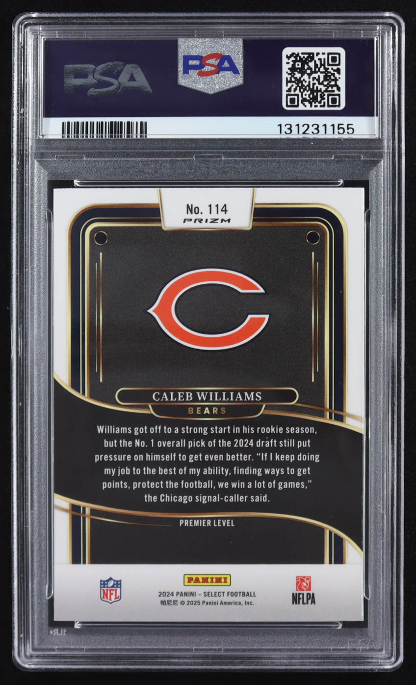 Caleb Williams 2024 Select Prizm Black and Green Shock #114 RC (PSA 8)