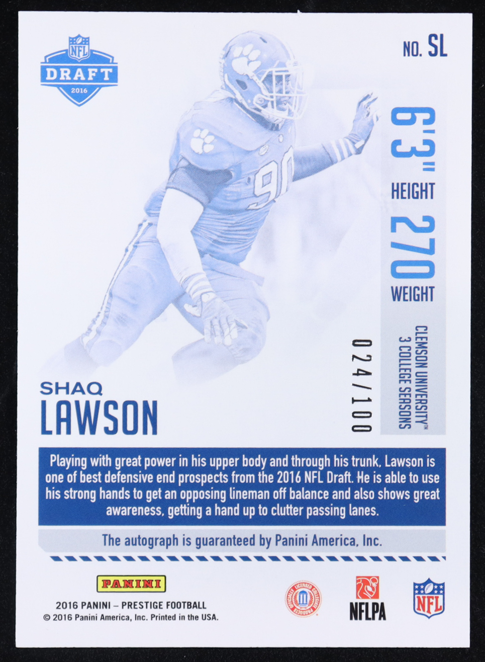 Shaq Lawson 2016 Prestige Rookie Autographs Xtra Points Purple #82 #024/100 RC