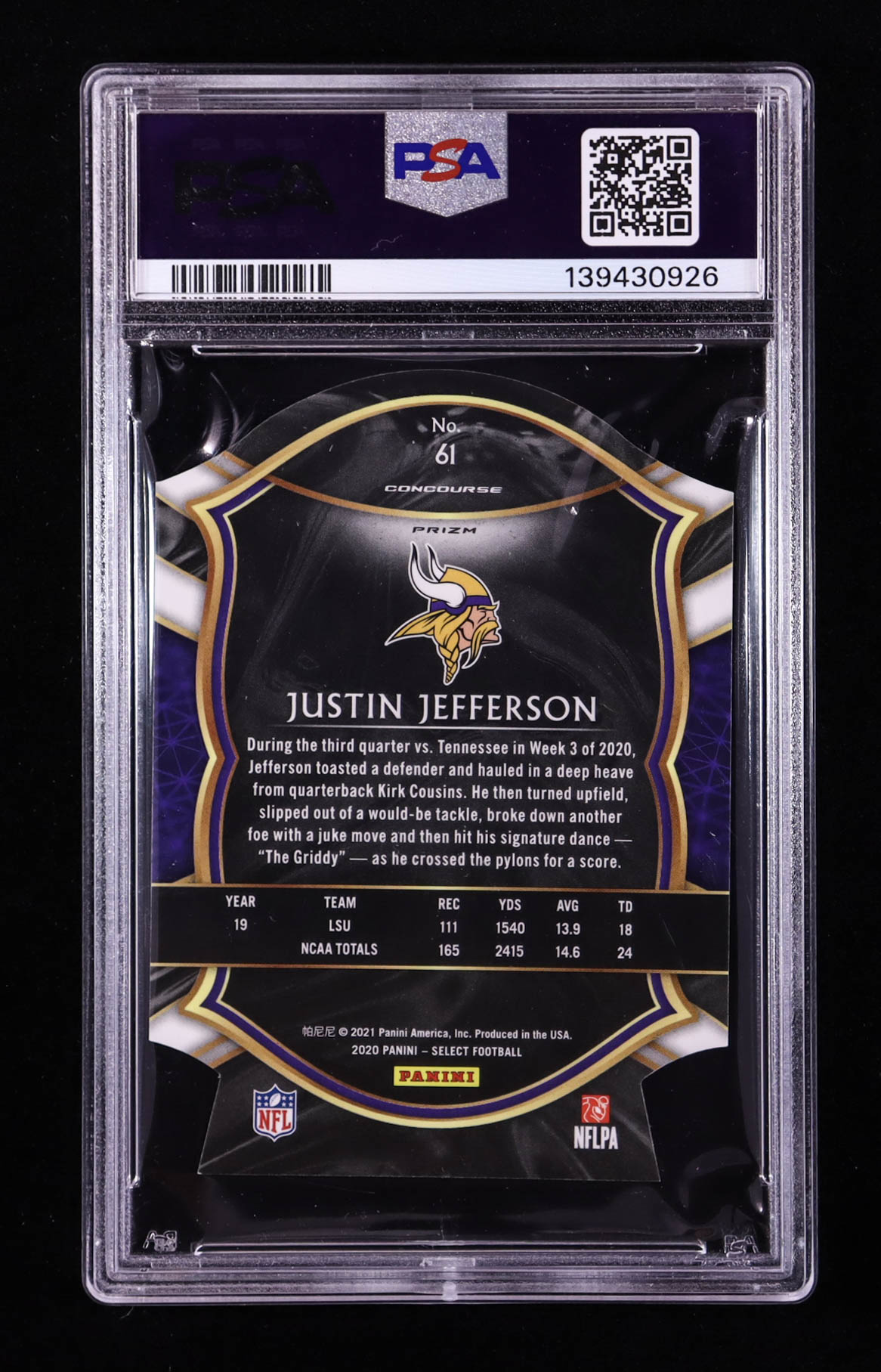 Justin Jefferson 2020 Select Prizm Blue Die Cut #61 RC (PSA 9)