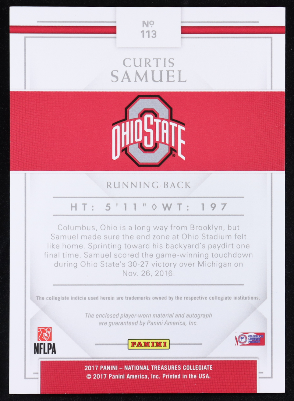 Curtis Samuel 2017 Panini National Treasures Collegiate JSY AU #113 #79/99 RC