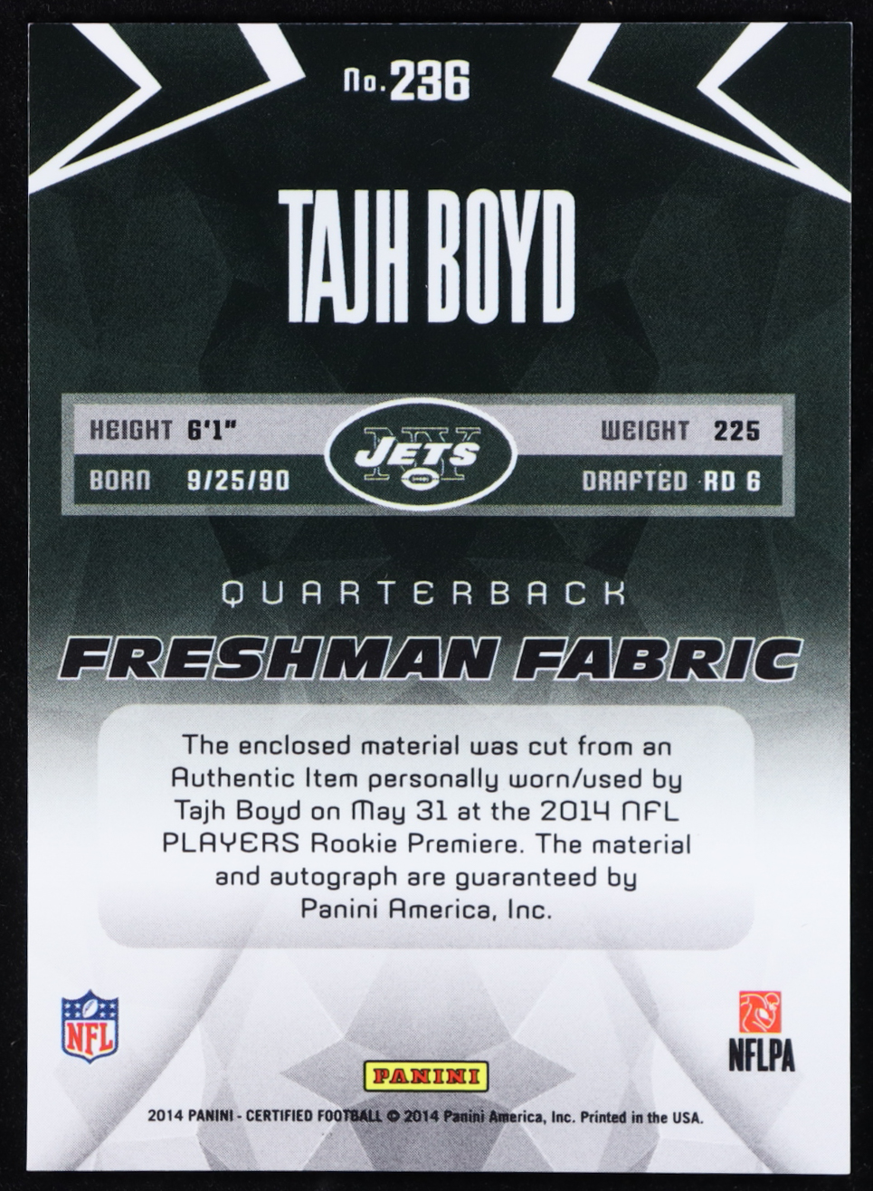 Tajh Boyd 2014 Certified Blue JSY AU #236 #21/99 RC