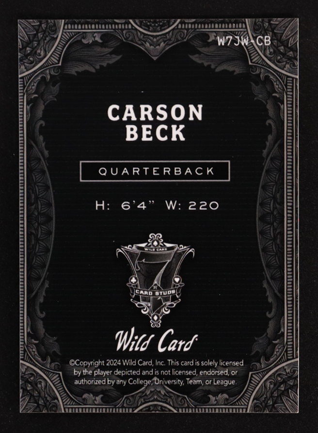 Carson Beck 2024 Wild Card 7 Card Studs Jokers Wild SilverGold #7JW-CB #1/1 RC