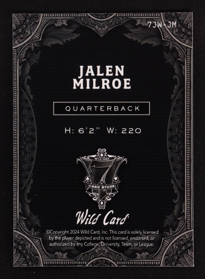 Jalen Milroe 2024 Wild Card 7 Card Studs Jokers Wild #7JW-JM #1/1 RC