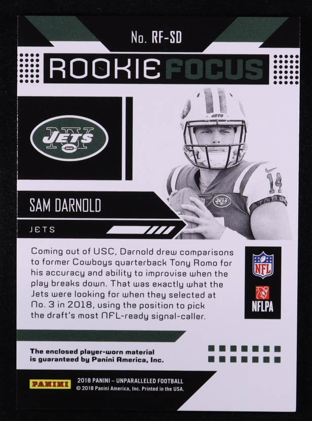 Sam Darnold 2018 Panini Unparalleled Rookie Focus Memorabilia #5 RC