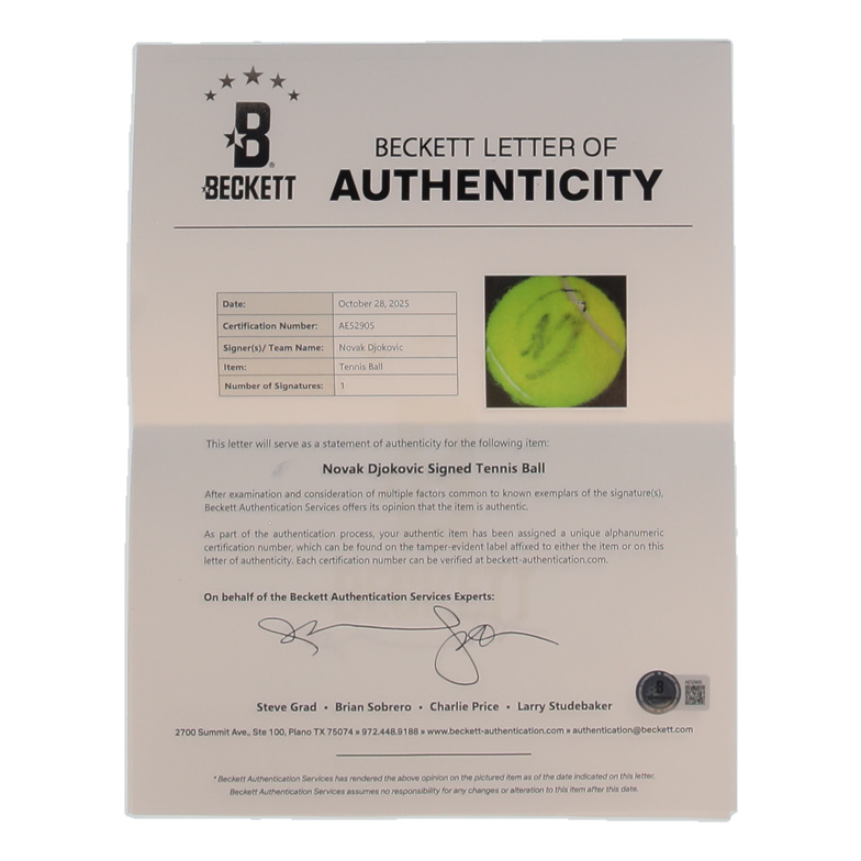 Novak Djokovic Signed Tennis Ball (Beckett)