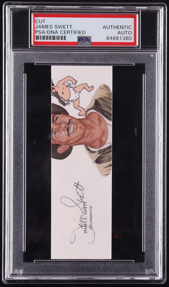 Cut measures approximately 2" x 5" in size and has been hand-signed by James E. Swett (D. 2009).