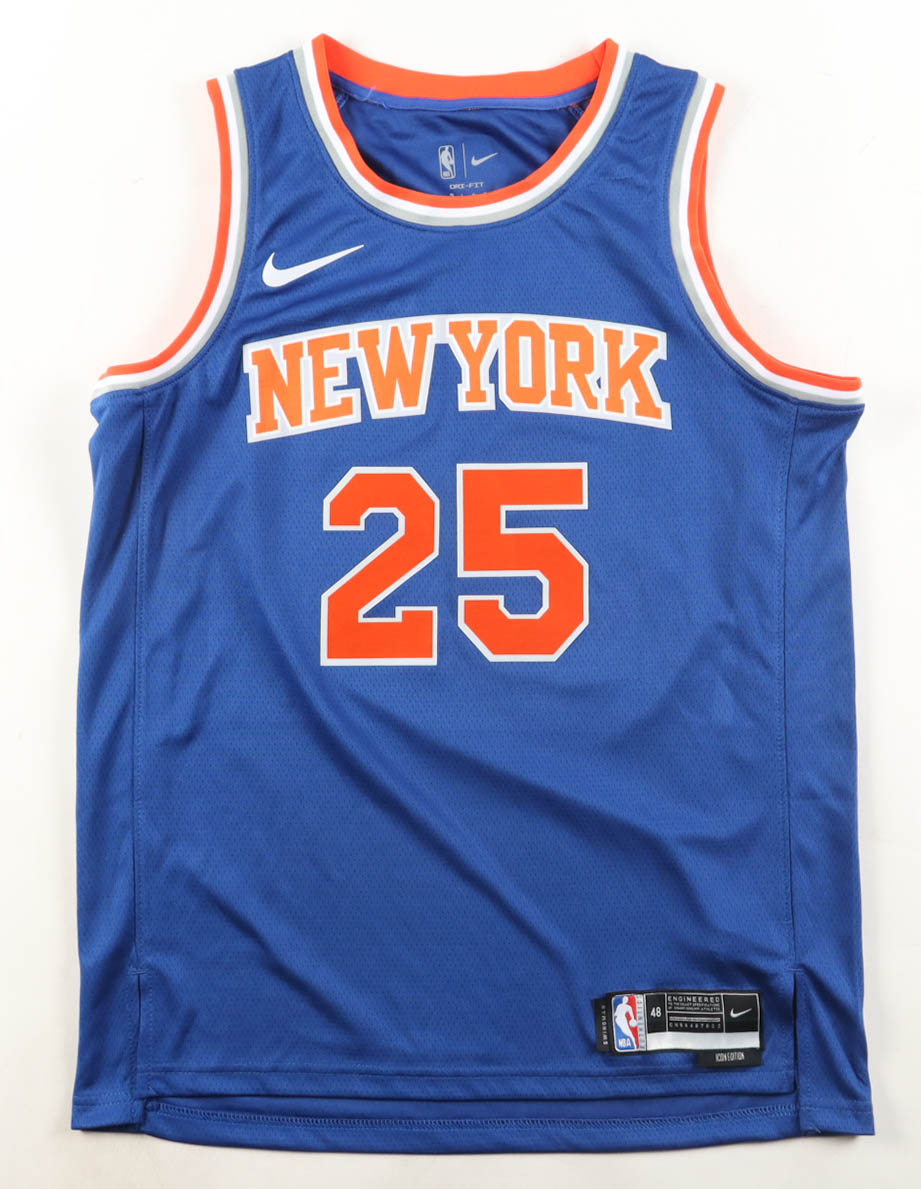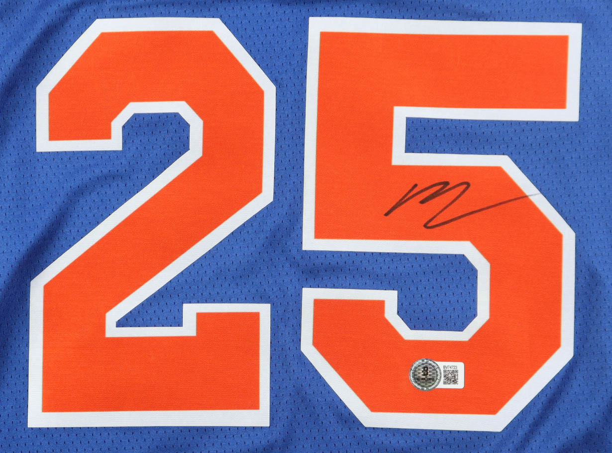 Nike authentic jersey with everything pressed on, size 48. Hand-signed by Mikal Bridges (New York Knicks).