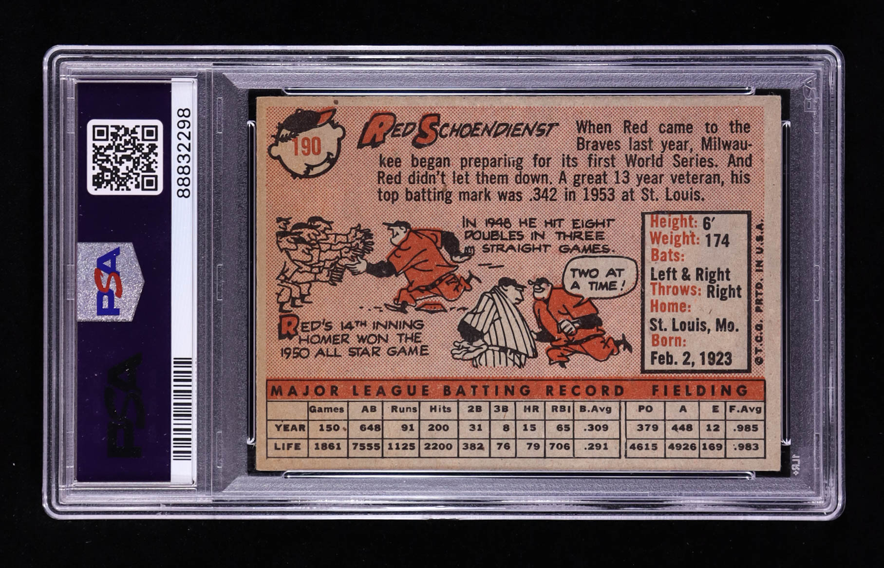 Red Schoendienst 1958 Topps #190 (PSA 4)