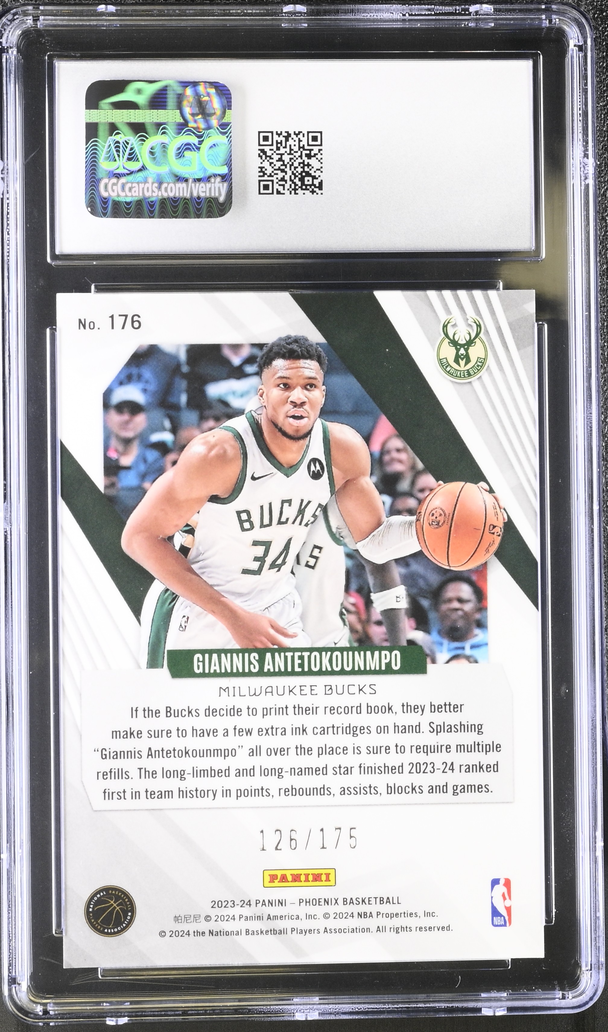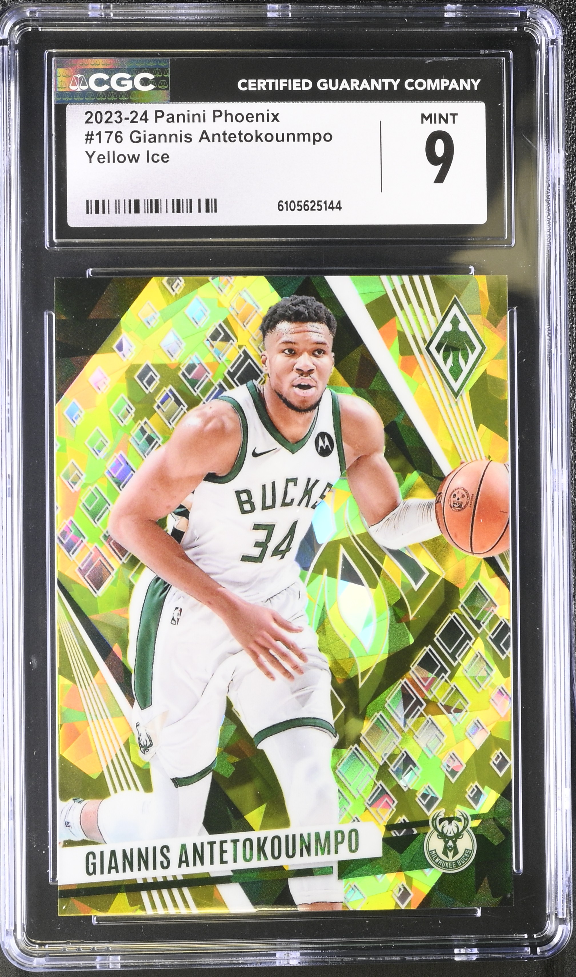 Giannis Antetokounmpo 2023-24 Panini Phoenix Yellow Ice #176 #126/175 (CGC 9)