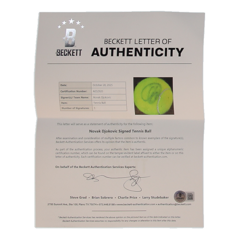 Novak Djokovic Signed Tennis Ball (Beckett)