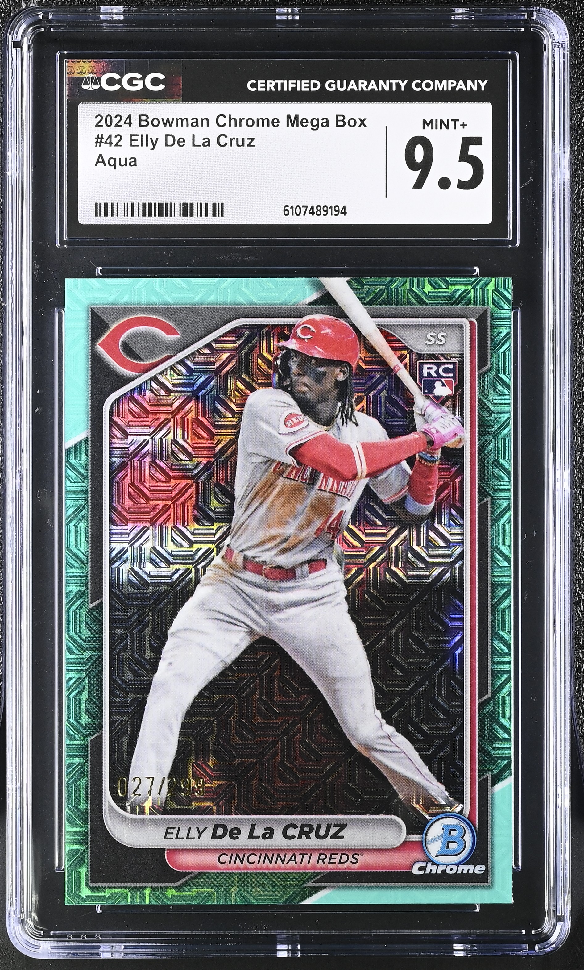 Elly De La Cruz 2024 Bowman Chrome Mega Box Aqua Refractors #42 RC #27/299 (CGC 9.5)