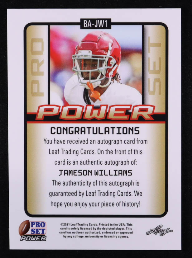 Jameson Williams 2021 Leaf Pro Set Power Bronze Signatures #BAJW1 RC