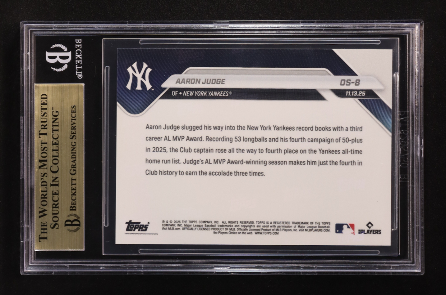 Aaron Judge 2025 Topps Now Offseason MVP #OS-8 (BGS 9.5)