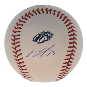 Rawlings Official Major League Tampa Bay Rays 25th Anniversary logo baseball. Hand-signed by Junior Caminero (Tampa Bay Rays).
