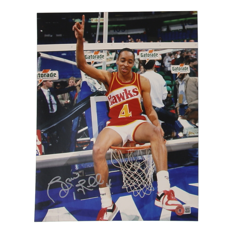 Photo measures 11" x 14" in size and has been hand-signed by Spud Webb (Atlanta Hawks).