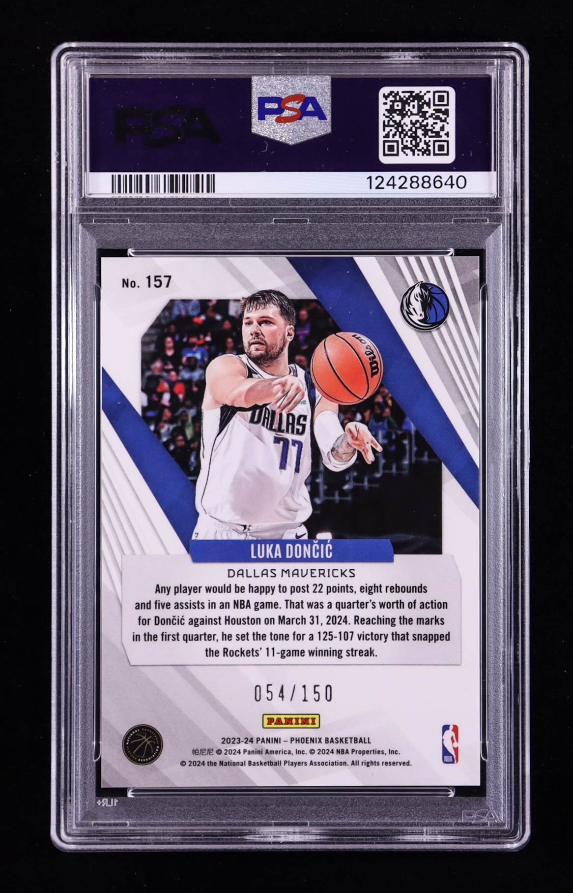 Luka Doncic 2023-24 Panini Phoenix White Lazer #157 #054/150 (PSA 10)
