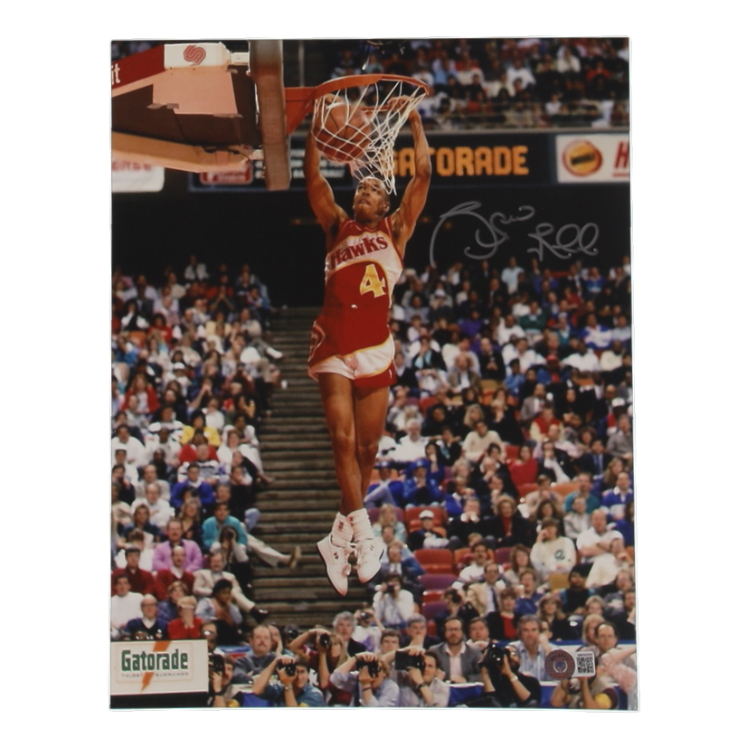 Photo measures 11" x 14" in size and has been hand-signed by Spud Webb (Atlanta Hawks).