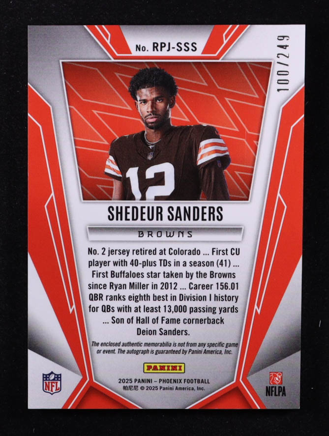 Shedeur Sanders 2025 Panini Phoenix Rookie Phenoms Jersey Autographs #8 #100/249 RC