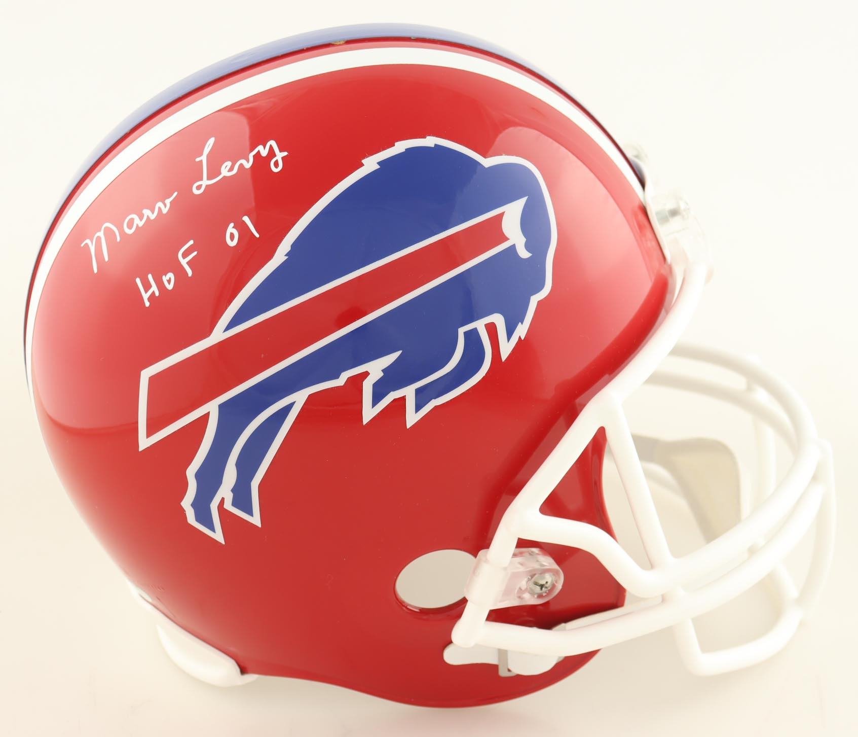 Marv Levy Signed Bills Full-Size Throwback Alternate Helmet Inscribed "HOF 01" (Schwartz)