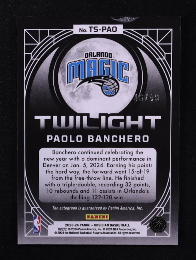 Paolo Banchero 2023-24 Panini Obsidian Twilight Signatures #10 #46/49