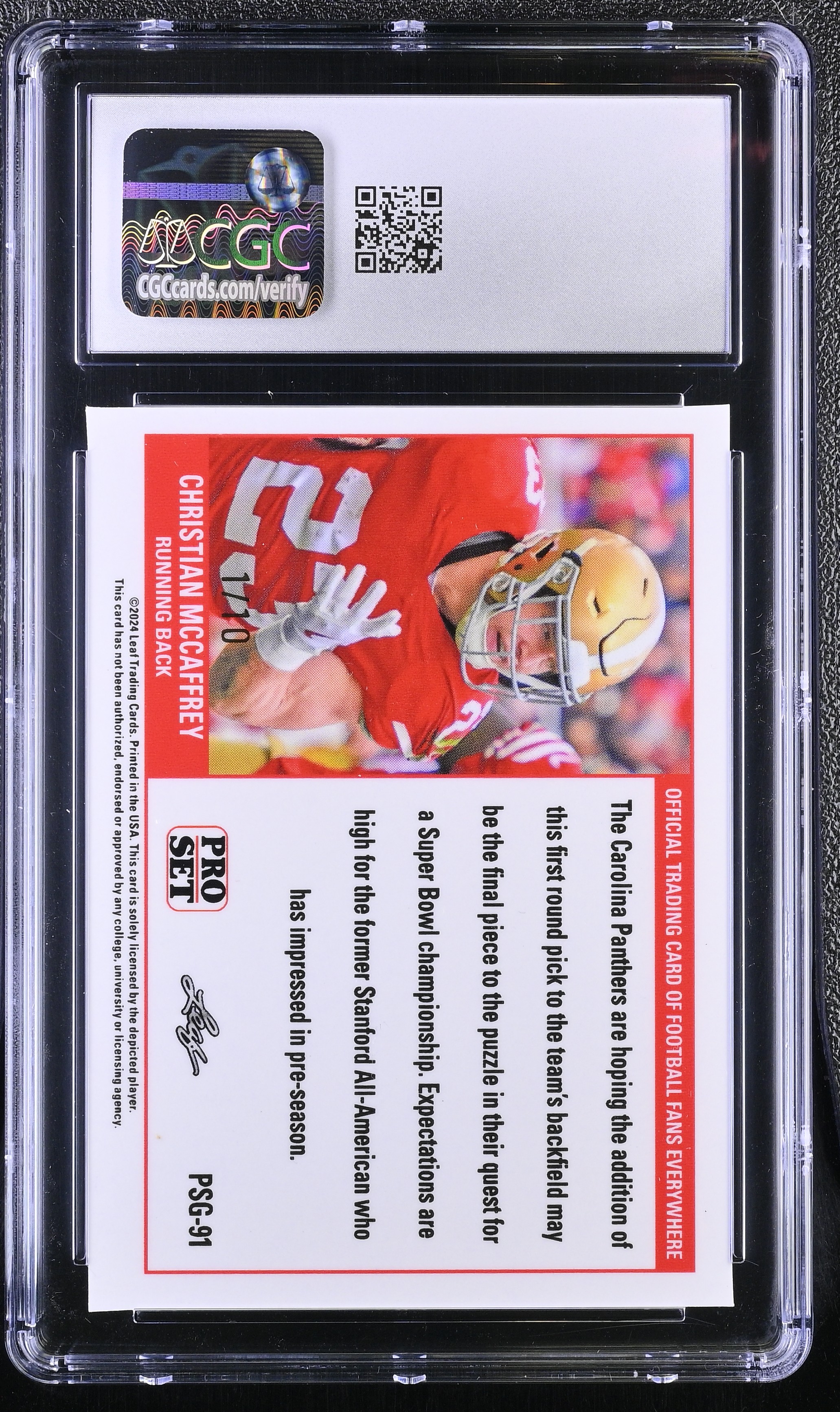 Christian McCaffrey 2023 Leaf Web Exclusives Pro Set Green #PSG91 #1/10 (CGC 10)