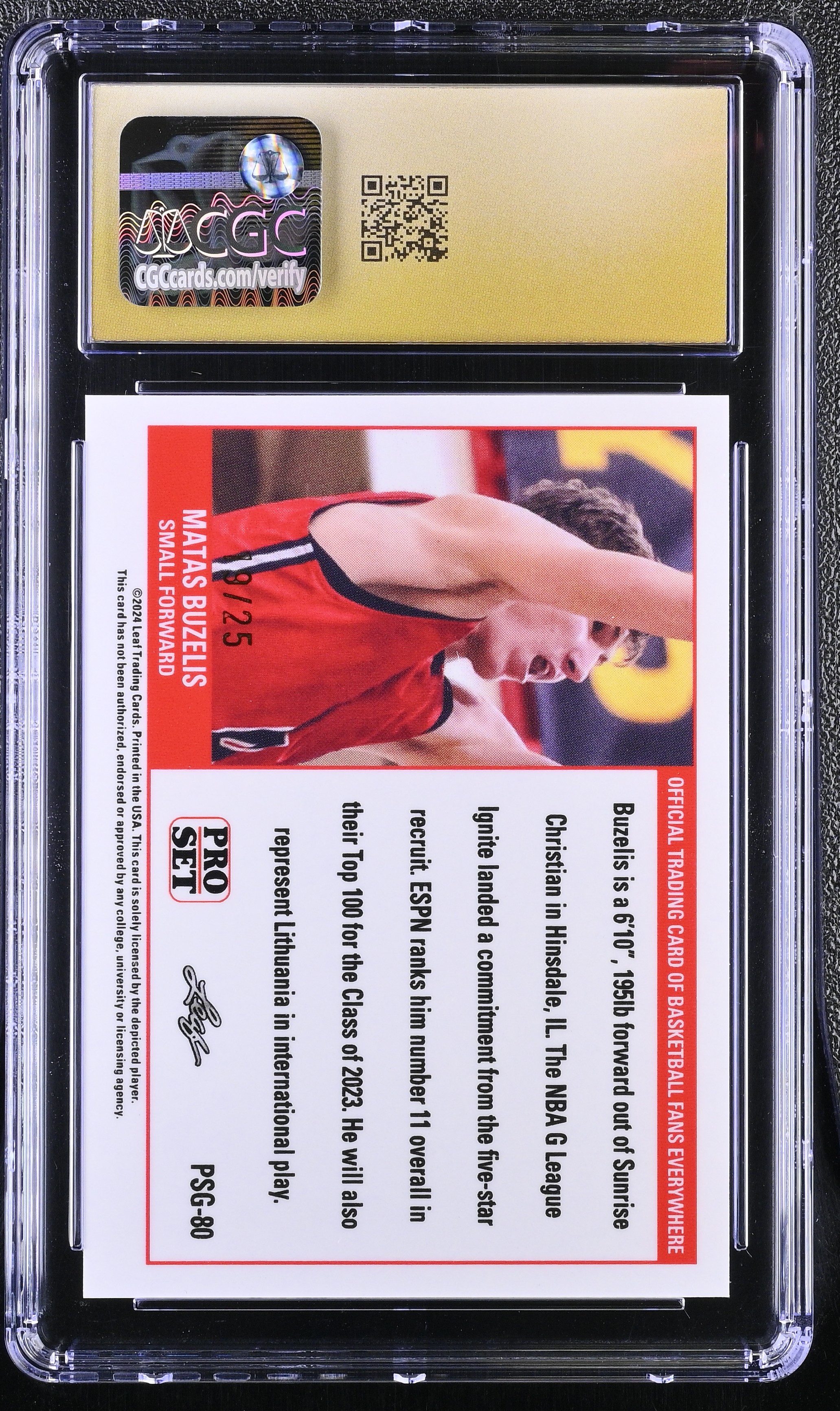 Matas Buzelis 2023 Leaf Web Exclusives Pro Set Blue #PSG80 RC #19/25 (CGC 10 | Pristine Black Label)