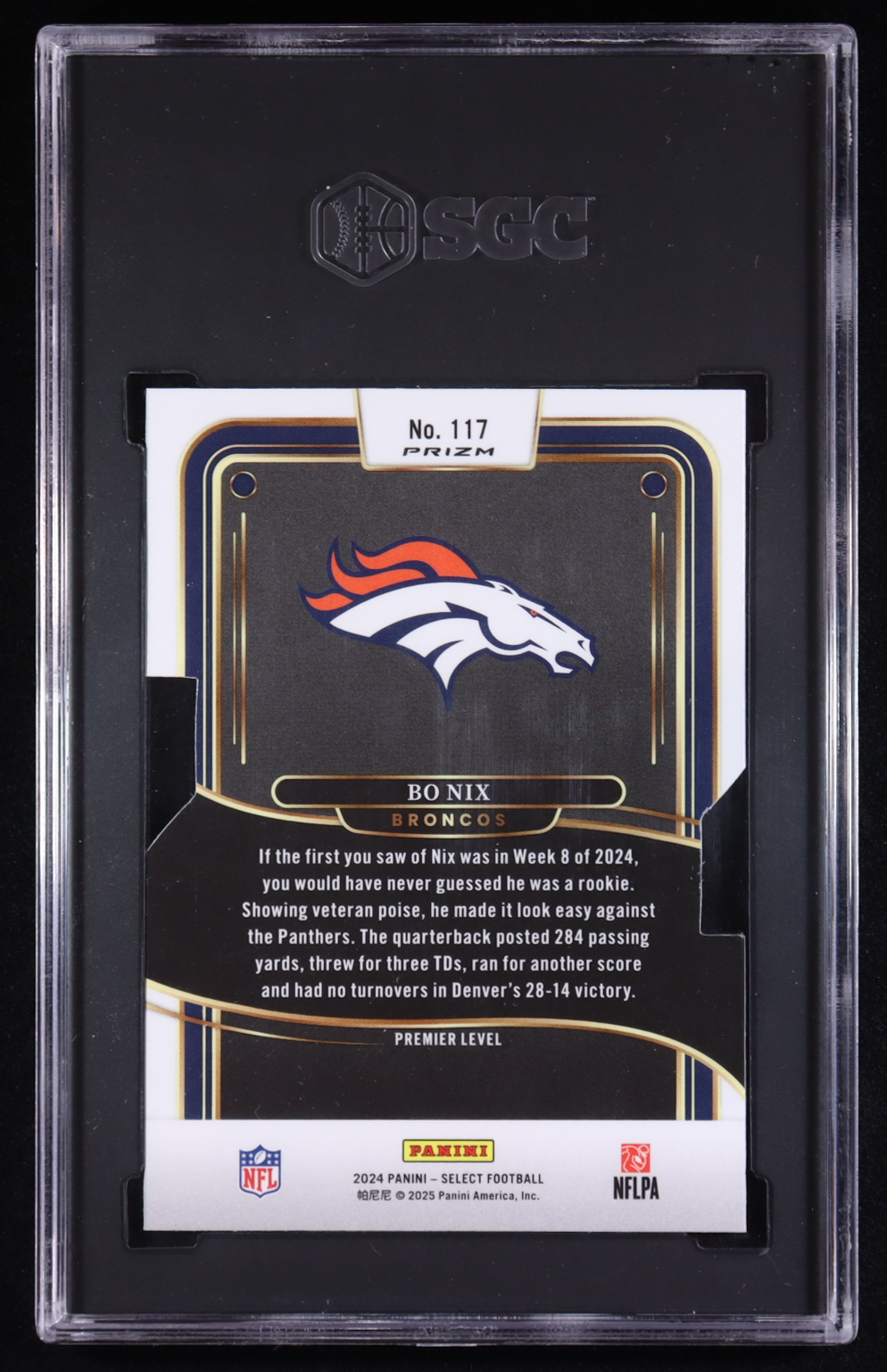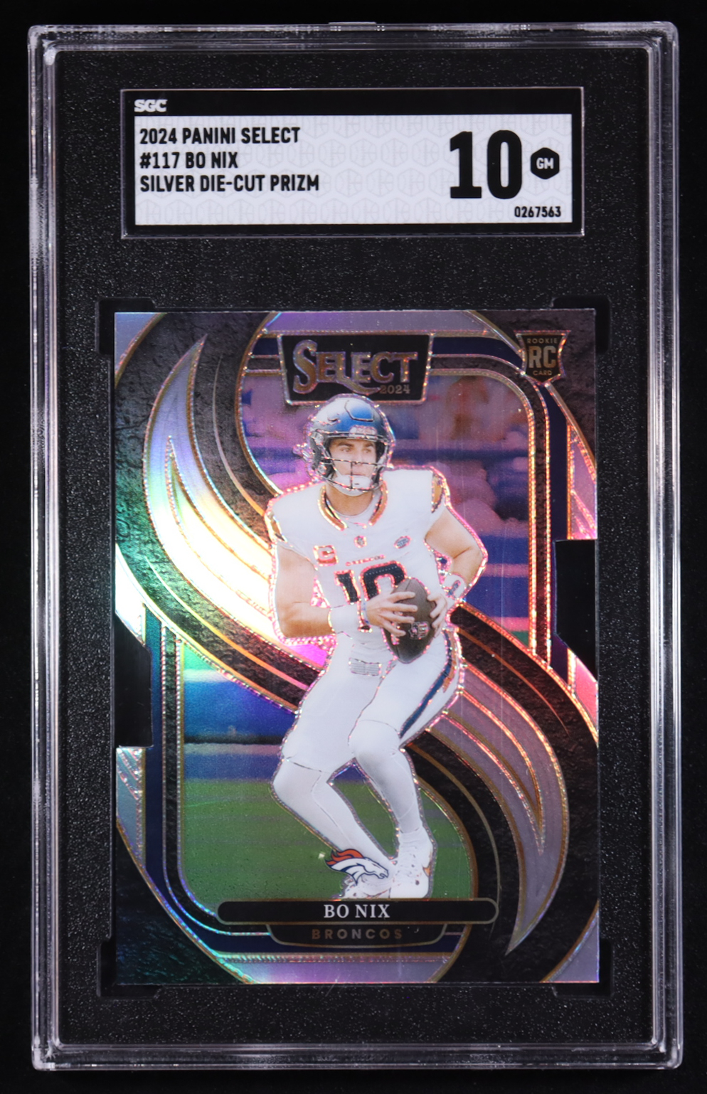 Bo Nix 2024 Panini Select Silver Die-Cut Prizm Premier Level #117 RC (SGC 10)