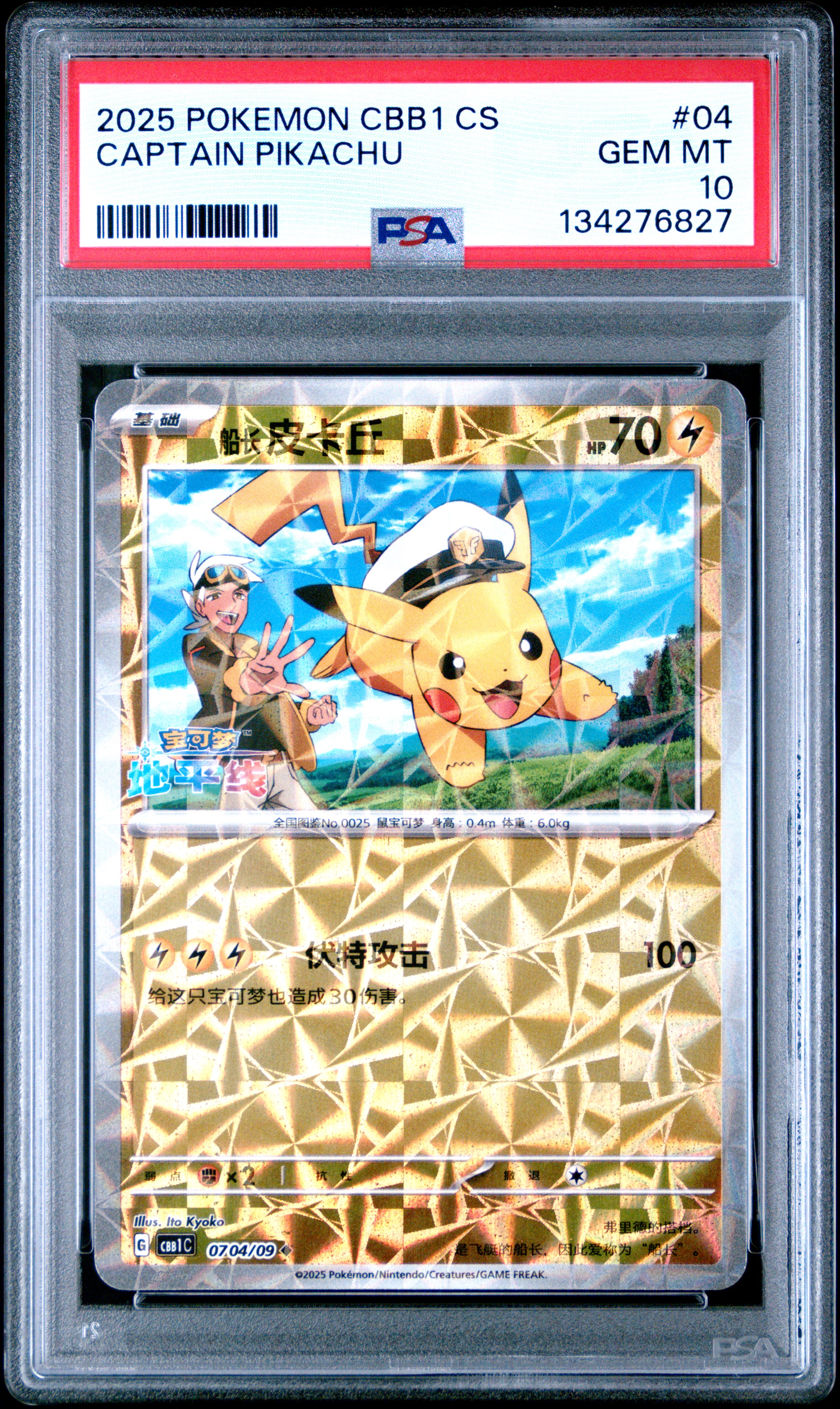 Captain Pikachu 2025 Pokemon TCG Scarlet & Violet Gem Pack Vol.1 Simplified Chinese #0704 Prism (PSA 10)