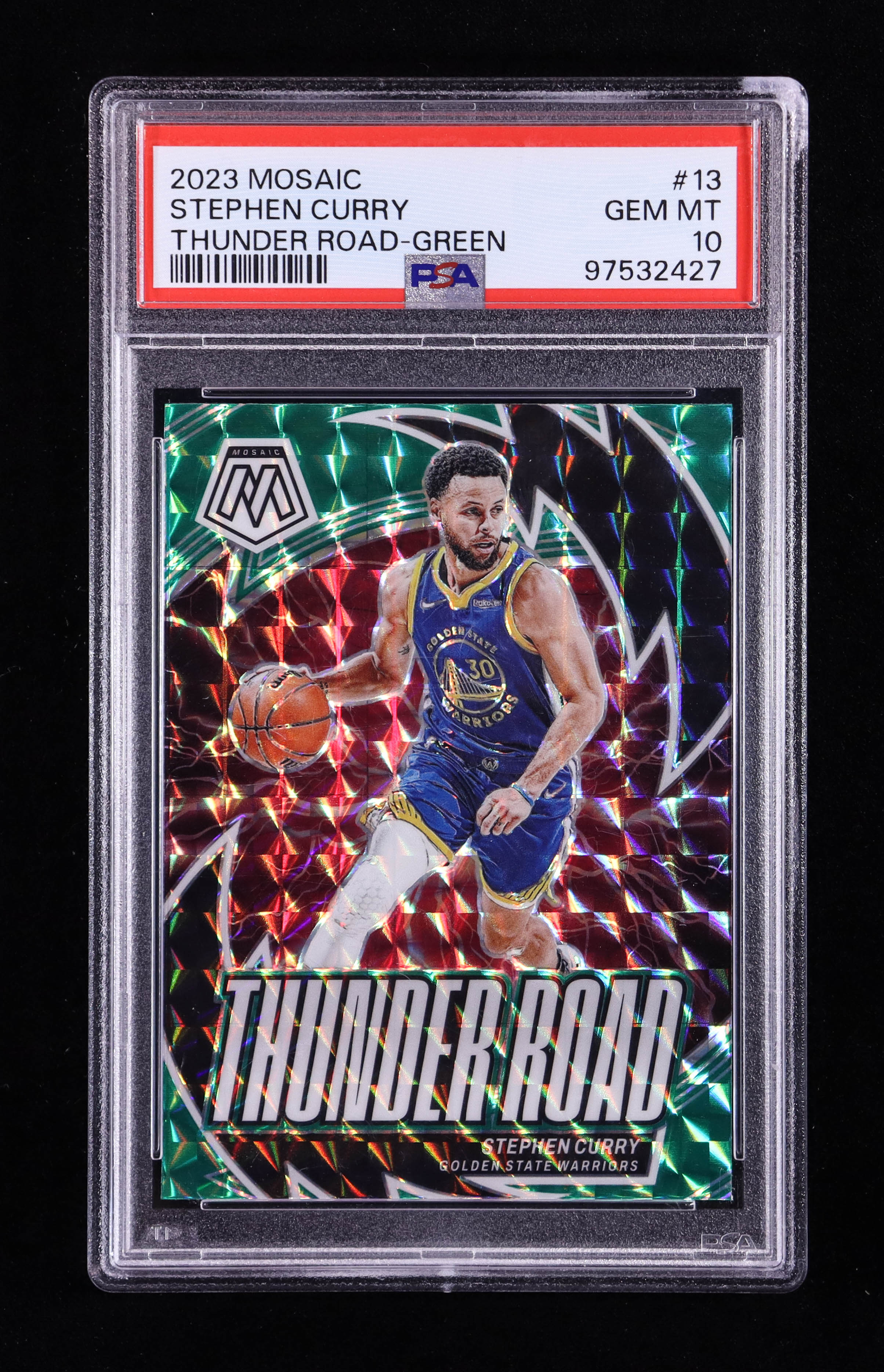 Stephen Curry 2023-24 Panini Mosaic Thunder Road Mosaic Green #13 (PSA 10)