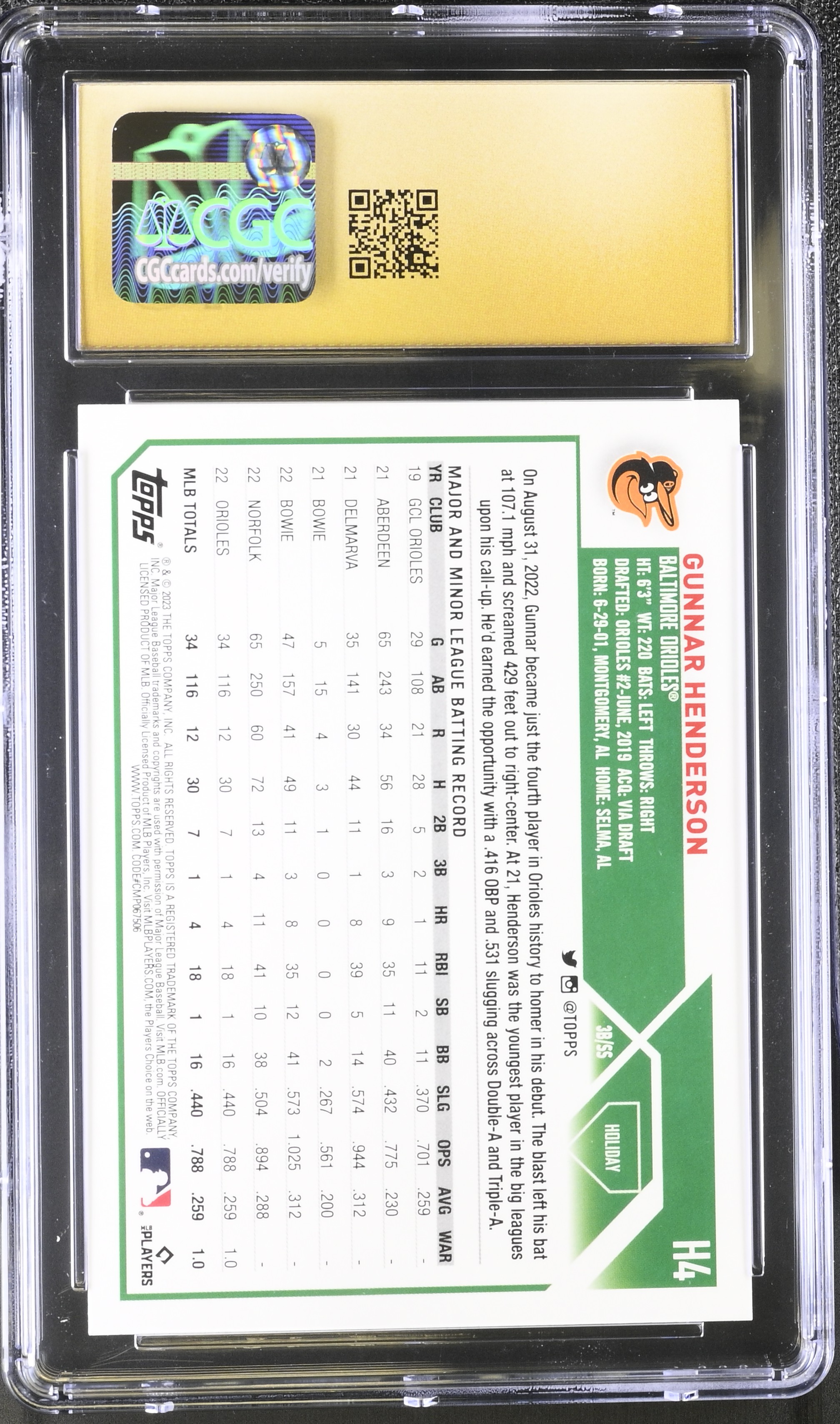 Gunnar Henderson 2023 Topps Holiday #H4 RC (CGC 10 | Pristine Black Label)