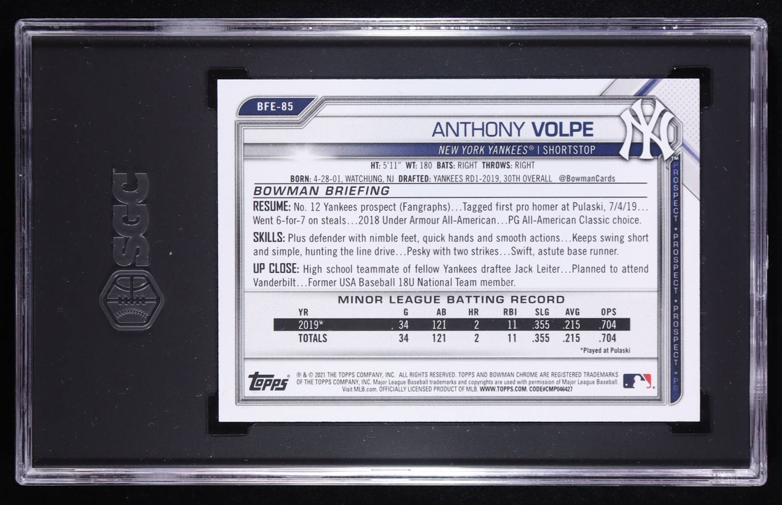 Anthony Volpe 2021 Bowman First Edition Sky Blue Foil #BFE-B5 RC (SGC 10)