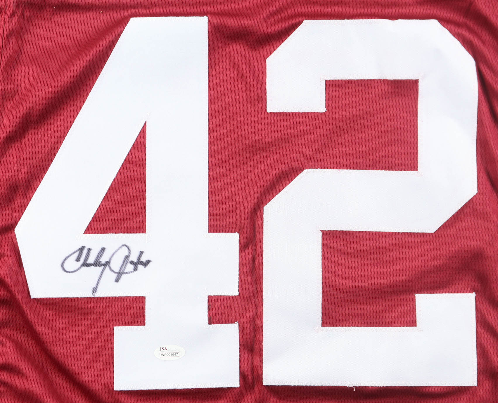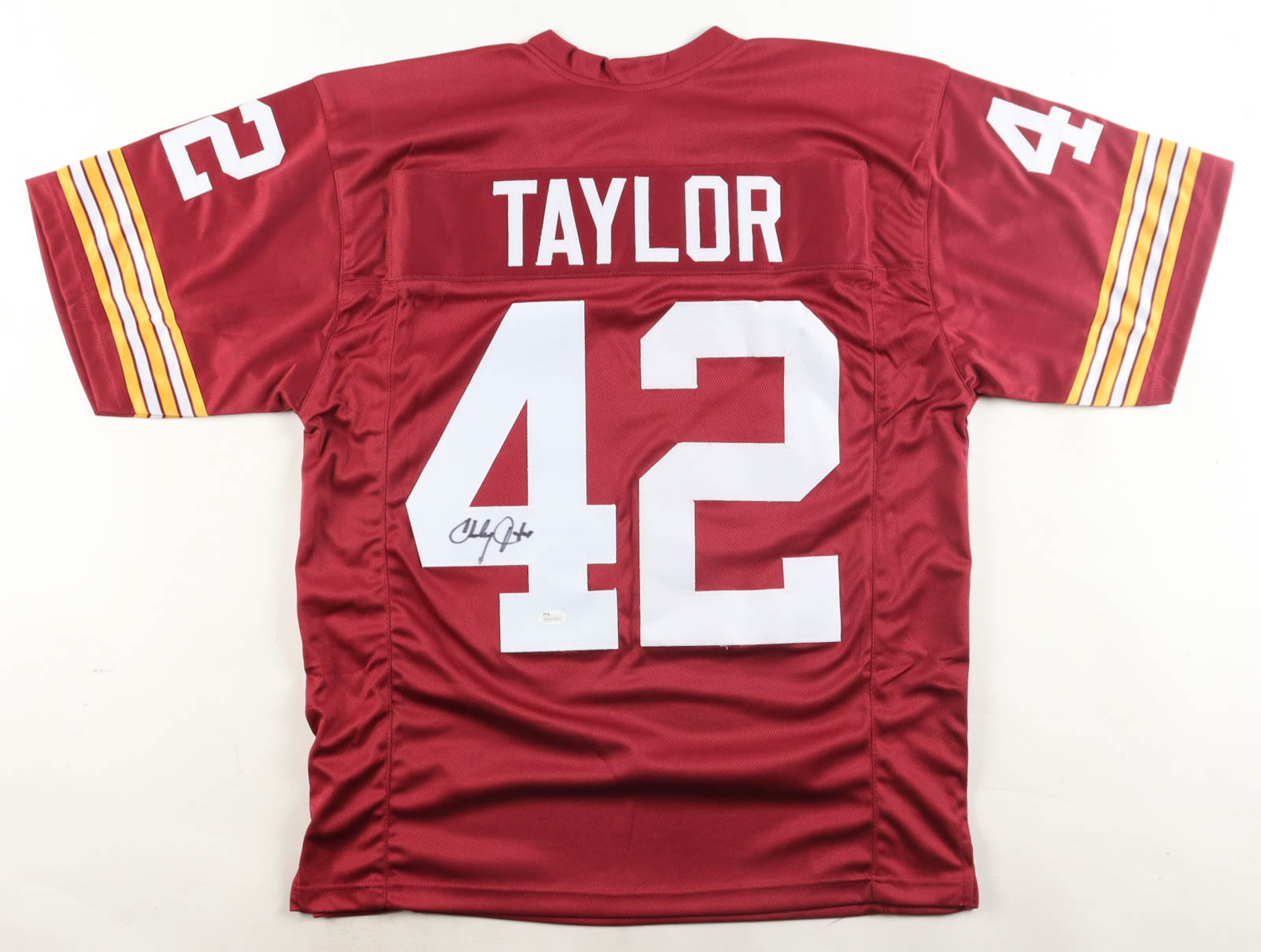 Custom jersey with everything sewn on, size XL. Hand-signed by Charley Taylor (D. 2022, HOF).