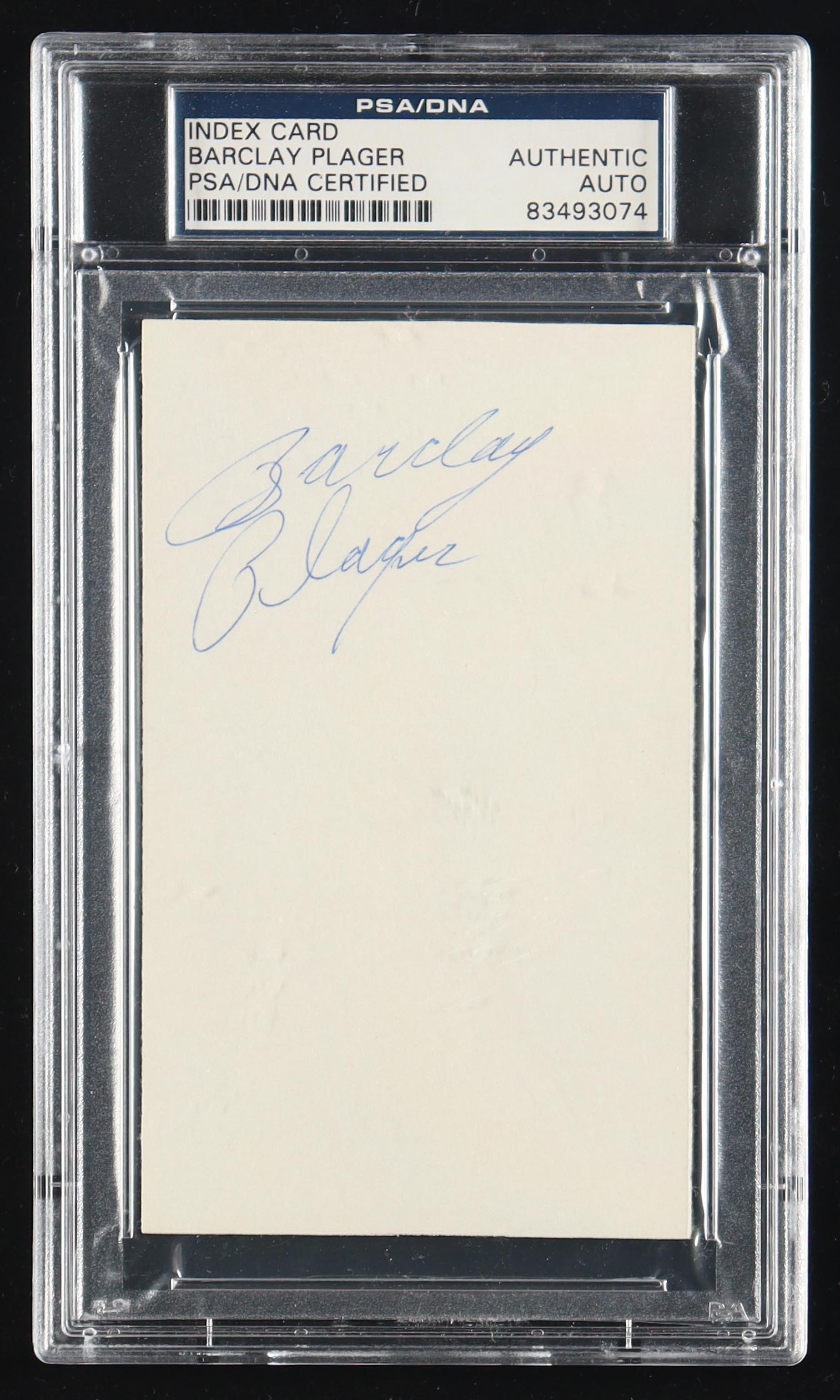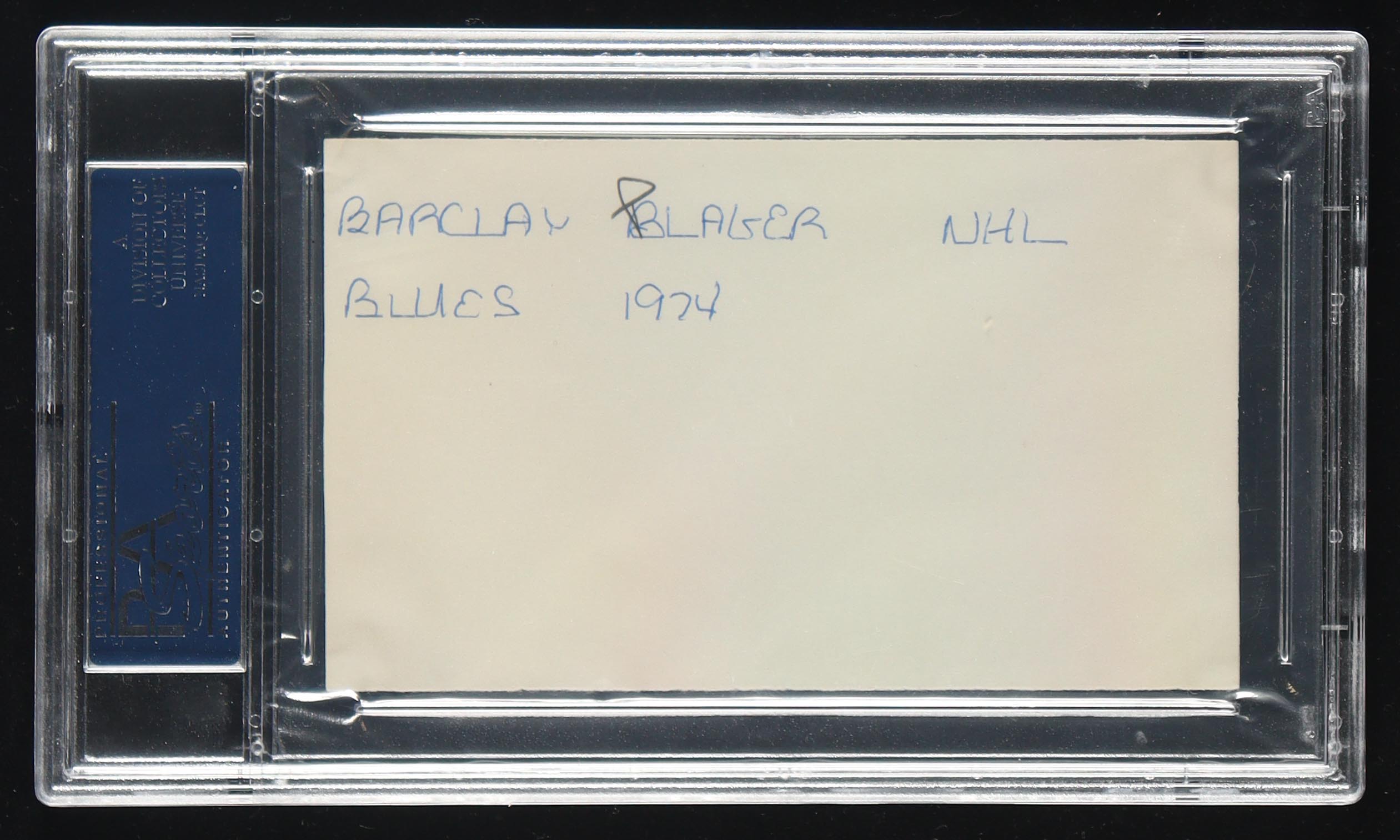 Barclay Plager Signed 3x5 Index Card (PSA)